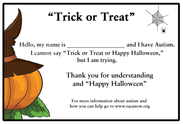 Also included are printable “trick or treat” cards to help create additional autism awareness and help our non verbal friends.