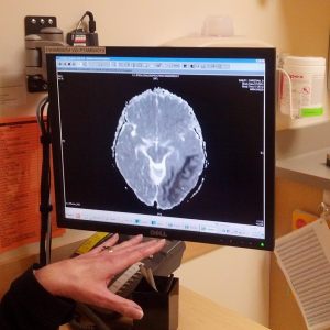 Monday morning I decided to take him to the doctor’s office. They also believed that he either had the stomach flu or a migraine. We had some blood work done and the doctor said that if he was feeling worse in the morning to call. The next morning none of his symptoms had subsided. I called the doctor’s office that morning and we were told to head up to our local children’s hospital to rule out “aseptic viral meningitis”. We drove to the hospital and wheeled him into the Emergency Room. As he was taken back to triage, we started to notice that he was slurring his words and mixing his sounds up. The first doctor to see him wanted a CT scan done immediately. The doctor came back and asked me to step into the hallway. He told me that there were some abnormalities found. He took the image and put it up on the light board and I could clearly see that there was a huge part of his brain that was a different color. “It seems that your son had a stroke on the left side of his brain”.