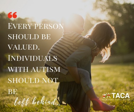 Let’s make that better for families. If we invest early in young children with autism, we can see tremendous cost savings later on in their life. And forget cost savings! Some children can recover from autism and their symptoms and become tax payers. We should at least try with every child. They have a bright future. The ACA is not fixed for families living with autism and needs improvement to eliminate red tape and co-pays for each treatment or visit.