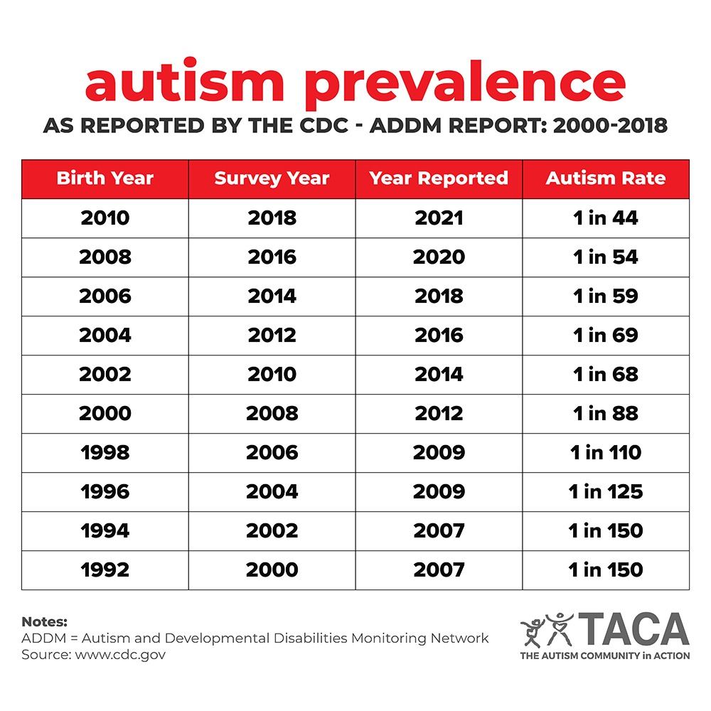 1. Autism Prevalence – The Autism Community in Action (TACA) (tacanow.org)