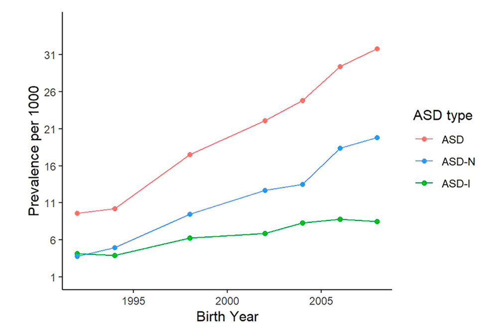 • Children identified with autism without ID grew at a faster rate (5-fold increase) compared to children identified with autism and ID (2-fold increase).